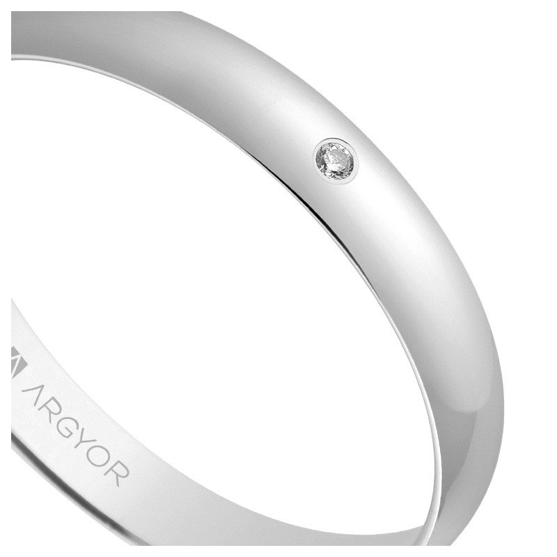 Alianza 18 Ktes en oro blanco fabricada con oro de 1ª ley 18 kilates, formato clásico brazo de media caña de 3 mm de ancho, lleva un diamante talla brillante (H-SI) y por su diseño que se ha llevado, se lleva y se llevará, jamás quedará anticuada y permanecerá siempre como el mejor testigo de vuestro amor. La puedes encontrar en nuestra web en todos los anchos, en todos los colores de oro y en 9 y 18 quilates.