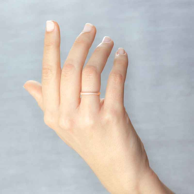 El acabado con efecto textura de la Alianza boda oro 18 Ktes rosa es uno de los detalles más característicos de esta pieza. Las finas líneas horizontales que recorren la superficie del anillo crean un efecto semi mate, que le da un toque de modernidad y elegancia. Este tipo de acabado es ideal para quienes buscan un anillo de boda que no solo sea bonito, sino también diferente y original.