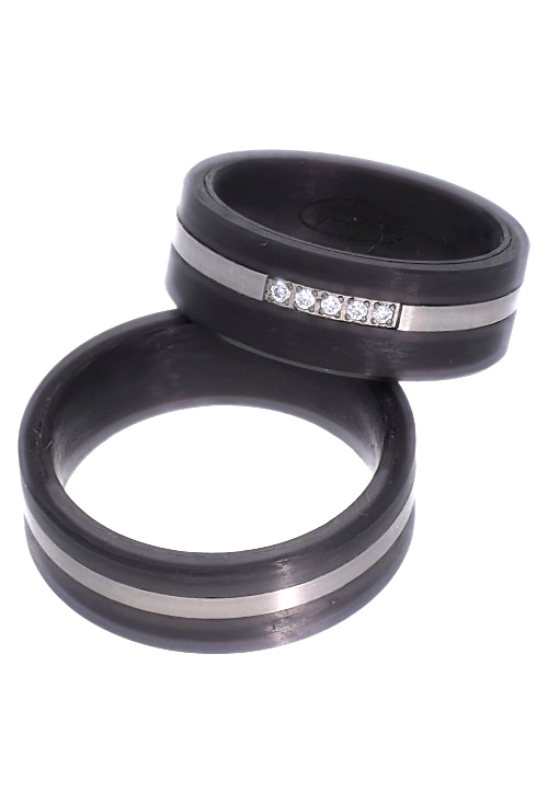 Con cuatro diamantes talla brillante de 0,01 quilates cada uno, esta alianza de fibra de carbono y titanio con diamantes aporta un toque de brillo sutil que resalta su elegancia sin resultar ostentosa. Los diamantes, distribuidos con precisión, aportan un atractivo adicional al diseño minimalista y sobrio de la pieza, generando un equilibrio perfecto entre modernidad y sofisticación. Además, el acabado mate del titanio crea un hermoso contraste con el destello de los diamantes, logrando una alianza que cautiva y se distingue por su estilo refinado y contemporáneo.