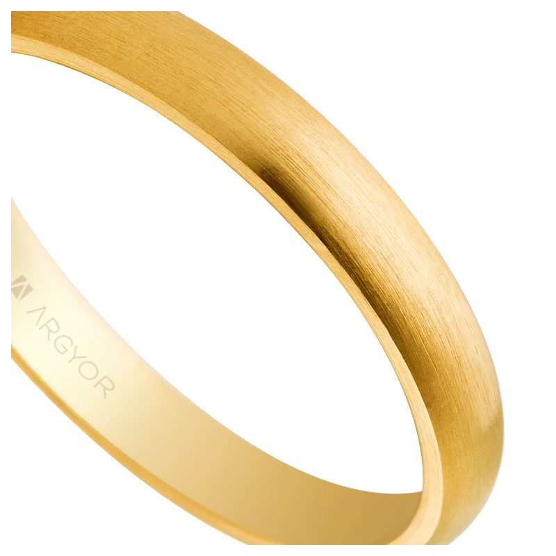 Lo que distingue a la Alianza de matrimonio oro amarillo de Argyor es su acabado matizado de pulido muy suave. Este detalle no solo le da un aspecto sofisticado y moderno, sino que también reduce las marcas y rayaduras visibles, manteniendo el anillo con un aspecto nuevo durante más tiempo. Además, el acabado matizado ofrece una textura única al tacto, añadiendo un nivel extra de elegancia y distinción.