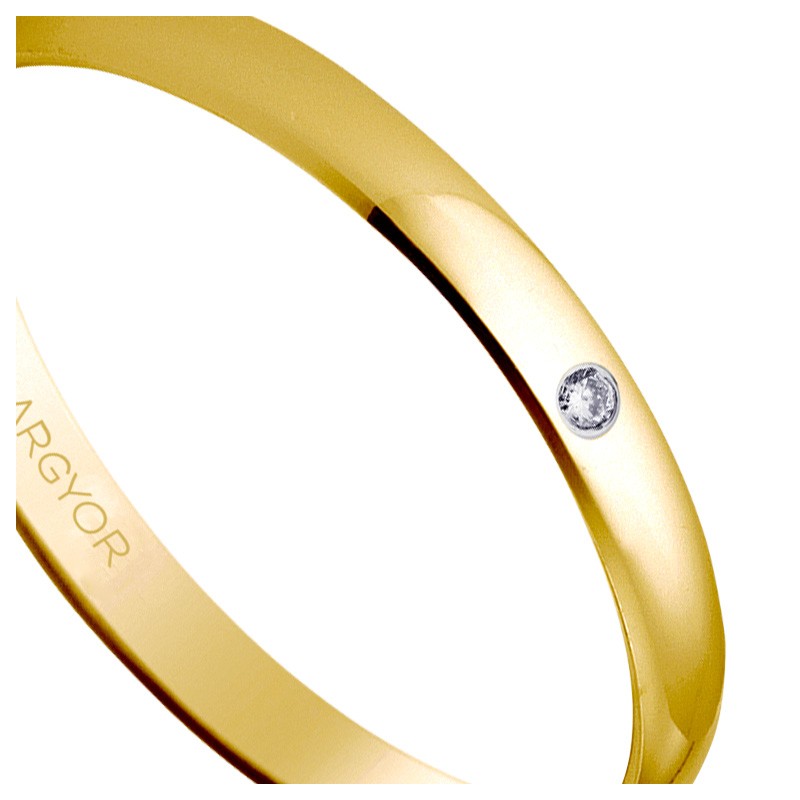La alianza de oro 18 Ktes con diamante de El Rubí Joyeros es una joya que simboliza la elegancia y el compromiso. Este modelo tradicional de media caña, con un ancho de 2,5 mm, está diseñado para brindar comodidad y estilo. El acabado pulido brillante y el diamante de 0,01 quilates, con talla brillante, color H y pureza SI, hacen de esta alianza una elección sofisticada y duradera. Disponible en tallas que van desde la 7 hasta la 33, esta pieza es ideal tanto para hombres como para mujeres. Si buscas una alianza que combine comodidad y lujo, esta opción es perfecta para ti.