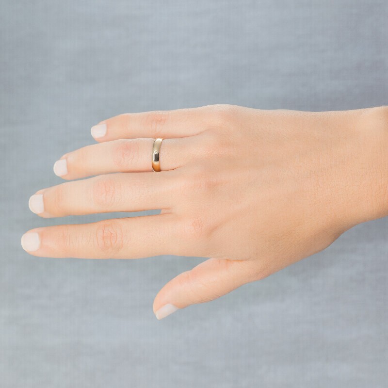 El diseño en forma de media caña de la alianza de oro 18 ktes no solo es estéticamente agradable, sino también extremadamente cómodo. Su forma curvada se ajusta suavemente al dedo, permitiendo un uso prolongado sin molestias. Además, el acabado pulido asegura que la alianza se desliza suavemente, evitando cualquier fricción incómoda. Esta alianza es perfecta para aquellos que buscan una joya que puedan llevar todos los días sin inconvenientes.