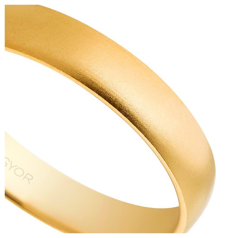 La Alianza de oro 18 ktes destaca por su diseño atemporal. La banda de 4 mm es lo suficientemente ancha para ser llamativa, pero también sutil y cómoda para el uso diario. La forma de media caña proporciona un ajuste ergonómico que se adapta perfectamente al dedo, evitando molestias incluso durante largos periodos de uso. La terminación matizada como arena añade una textura única, haciendo que esta alianza resplandezca con una discreta sofisticación. Este acabado en mate es ideal para aquellos que prefieren un brillo más suave y refinado en comparación con el tradicional oro pulido.