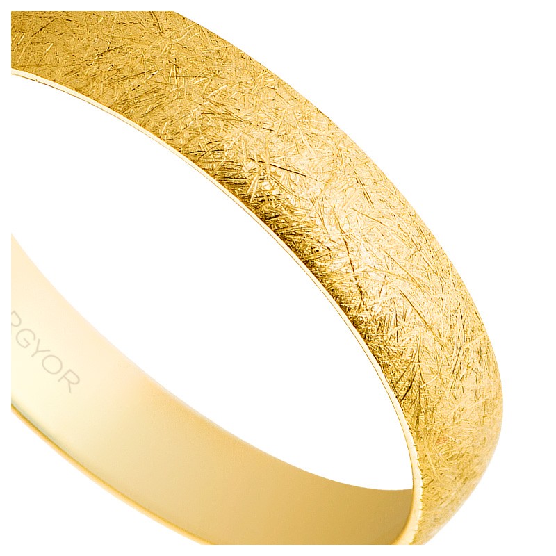 Descubre la Alianza de oro amarillo de 18 kilates, una pieza clásica y refinada actualizada con un moderno efecto hielo. Este modelo de media caña con interior plano combina elegancia y confort, ideal para el uso diario. Con un ancho de 4 mm y una altura aproximada de 1,00 mm, esta alianza no solo simboliza tu amor eterno, sino que también se adapta a las tendencias contemporáneas en joyería. Hecha a medida y disponible en una amplia gama de tallas, la Alianza de oro amarillo es la elección perfecta para un matrimonio que quiere destacar sin perder la sofisticación.