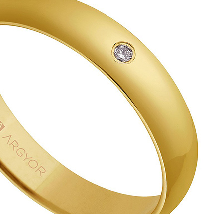 La Alianza de oro 9 Ktes amarillo 4mm Argyor está adornada con un diamante de talla brillante de 0,02 quilates. La talla brillante es una de las más populares por su capacidad para maximizar el reflejo de la luz, creando un destello brillante que captura miradas y añade un toque de lujo y sofisticación a la alianza.
