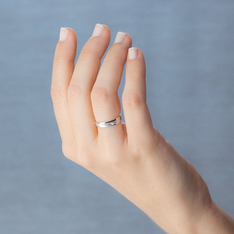 La Alianza de oro blanco 9 kilates no solo es visualmente impresionante, sino que también cuenta una historia. El diseño bicolor original de Argyor se basa en la fusión de dos metales preciosos, simbolizando cómo dos personas se unen para formar una sola. Al igual que el oro blanco y el oro amarillo, el amor se compone de elementos diferentes que, al unirse, crean algo verdaderamente especial. La hendidura estriada en el centro no solo proporciona un toque distintivo, sino que también sirve como recordatorio de las líneas de la vida que se cruzan. Así, cada vez que mires esta joya, recordarás que tu amor es un viaje que avanza en paralelo, con su propia belleza y características.