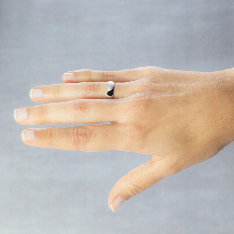 Alianza en plata 925 rodinada, clásica en media caña, con un acabado pulido brillante en la parte superior muy exclusivo que no encontrará en otras, ancho de 5 mm y un espesor menor de 1,20 mm, una joya que le acompañará siempre.