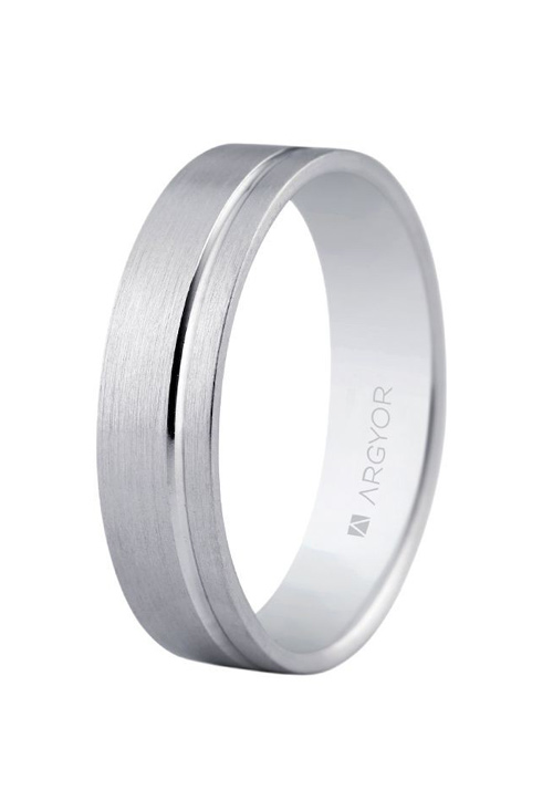 Alianza de matrimonio brazo plano en plata 925 mmas, con un ancho de 5 mm y un perfil inferior a 1,40mm, terminado con un matizado con textura satinada y ranura brillante, este anillo de boda es una opción increíble por su precio y calidad.