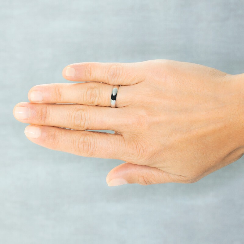 El diseño de media caña de esta alianza es un verdadero clásico en el mundo de la joyería. Con 4 mm de ancho, este anillo ofrece un equilibrio perfecto entre discreción y presencia, ideal para quienes buscan una pieza que sea visible pero no ostentosa. La forma de media caña asegura que el anillo se ajuste cómodamente en el dedo, haciéndolo perfecto para el uso diario.