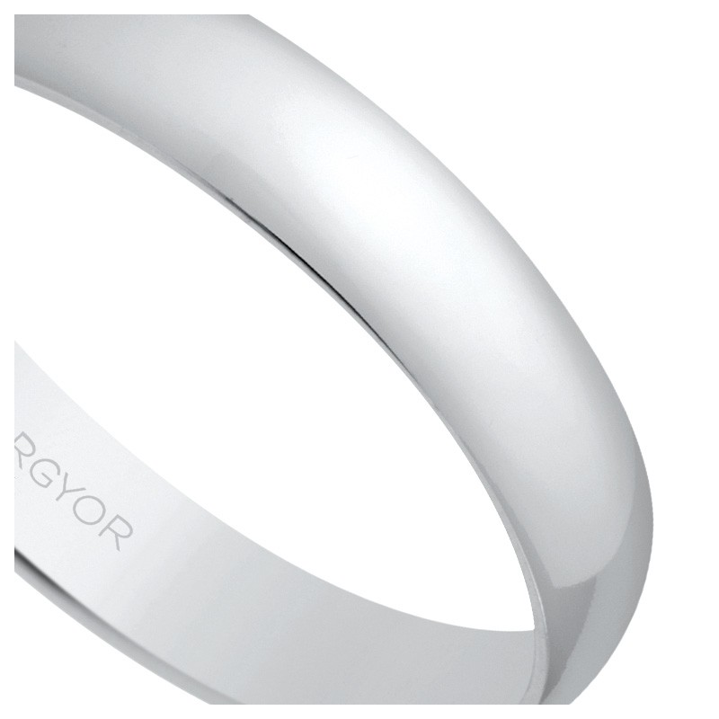 Alianza en oro blanco 18 kilates, media caña con un ancho de tres milímetros y medio y un perfil menos de un milímetro, es el típico anillo de matrimonio, muy cómodo de llevar gracias a su interior plano, con un acabado pulido brillante protegido por un baño de rodio, es una de las mejores opciones, con la mejor relación calidad/precio.