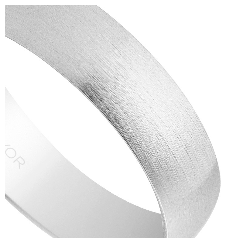 La alianza oro blanco 18 Ktes destaca por su diseño clásico en media caña ancha, un estilo que nunca pasa de moda y que añade un toque de sofisticación a cualquier look. El acabado satinado, conseguido con un suave rayado vertical, aporta una textura sutil y elegante, reflejando la luz de una manera discreta pero deslumbrante. Este detalle distintivo hace que la alianza sea una pieza única y especial, perfecta para simbolizar un amor duradero.