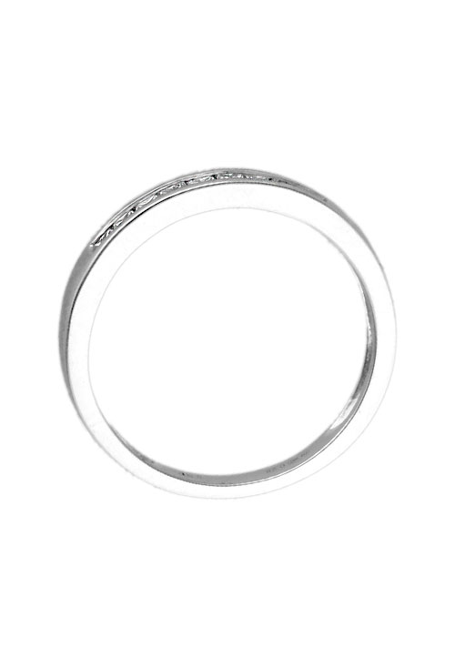 Las sencillas formas de este anillo desvelan un diseño deliberadamente estructurado para maximizar la luz que cada diamante refleja. A semejanza de un delicado mosaico, los diamantes talla princesa se ensamblan creando un corredor de reflejos y destellos, capturando la esencia de un momento inolvidable.