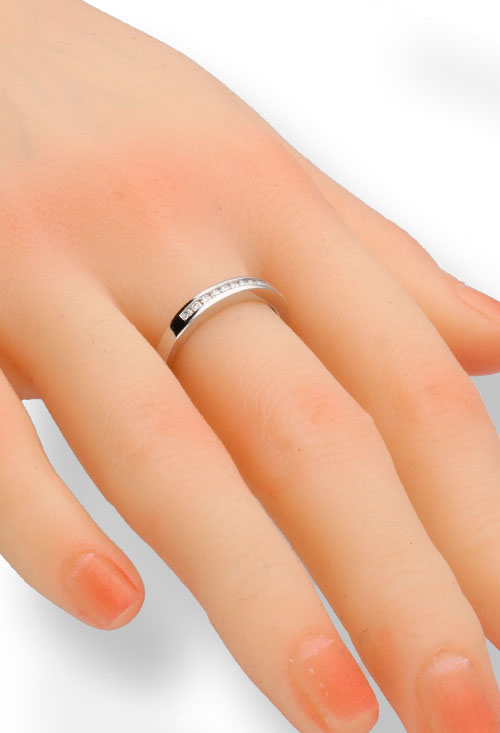 La disposición de los diamantes dentro del carril los mantiene protegidos y seguros, evitando su exposición directa a impactos o enganches, al tiempo que permite lucir su brillo.