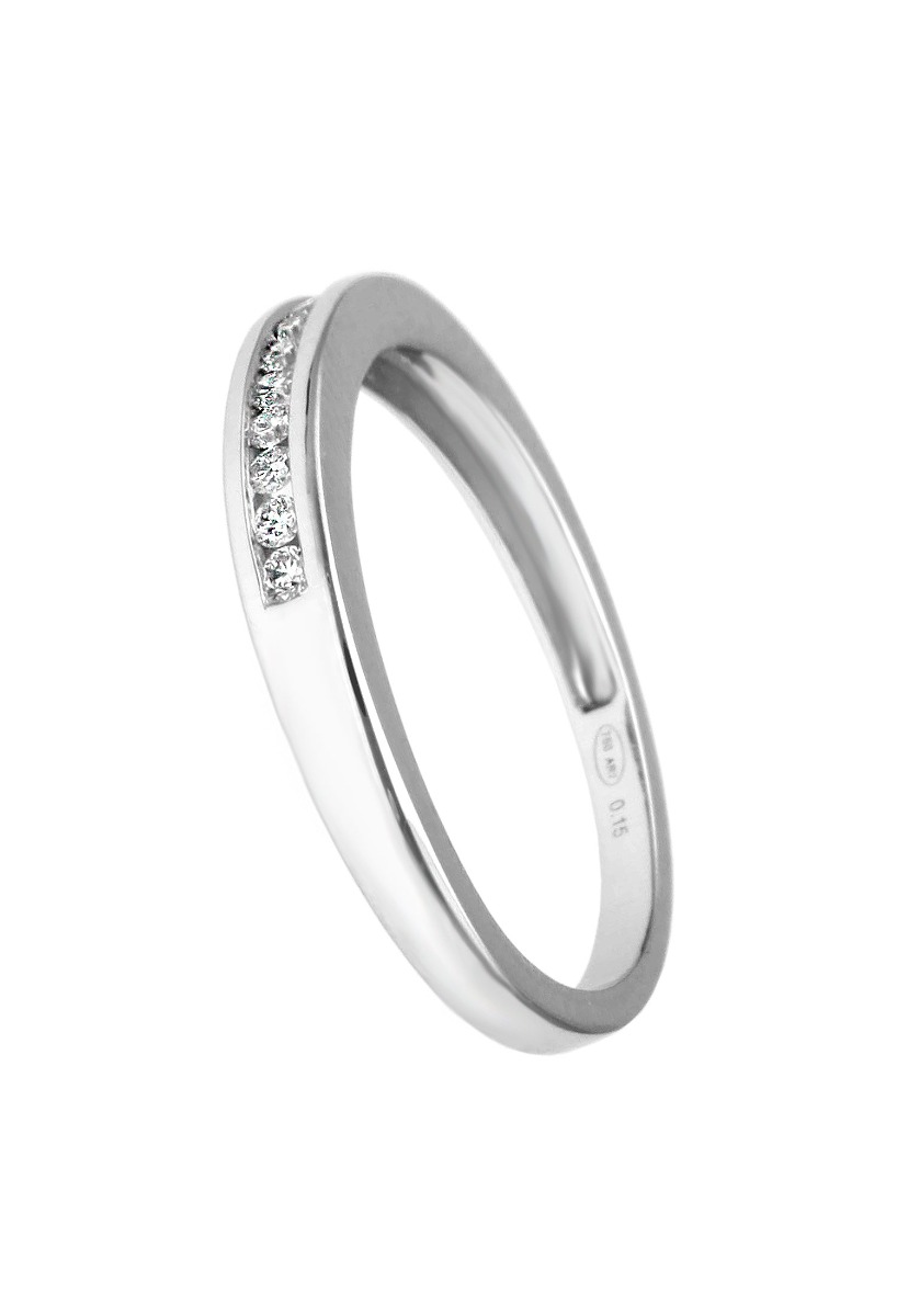 En cada uno de los 11 diamantes que suman 0.16 quilates y lucen un prestigioso color H con pureza SI, se encadena un momento precioso. Su configuración en superficie plana simboliza la perfecta armonía y constancia que el compromiso verdadero merece.