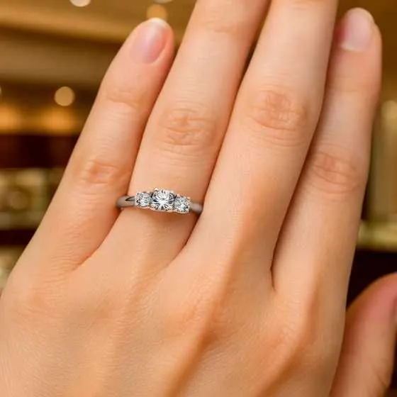 El diseño de tres piedras tiene un profundo simbolismo romántico. Representa el pasado, presente y futuro de la pareja, recordando que cada etapa del amor es valiosa y forma parte de una historia única. El diamante central, más grande, encarna el presente: el momento del compromiso, la promesa de fidelidad y el comienzo de una nueva vida en común.