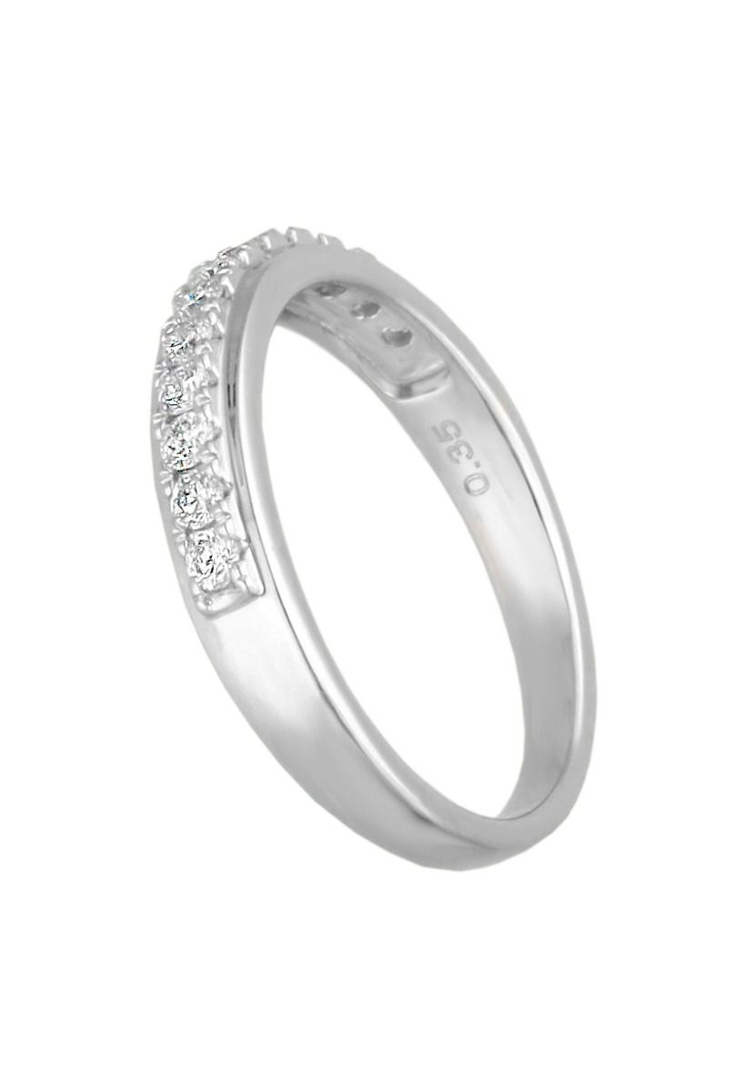 Cada uno de los 13 diamantes brillantes de color H y pureza SI, meticulosamente engarzados, suma un peso total de 0,351 quilates, creando un espectáculo de luces y reflejos que capturan la esencia de una promesa de amor genuino. Este anillo de compromiso de media alianza promete ser un símbolo luminoso de tu compromiso y una joya que se admirará cada día.