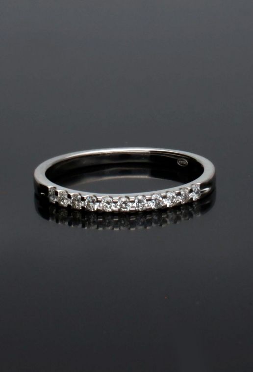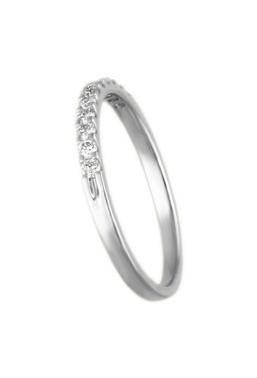 El anillo de compromiso oro blanco media alianza es el epítome del clásico contemporáneo y un favorito entre los anillos de compromiso por su diseño que encarna las tres B: belleza, solidez y buen precio. Con 11 brillantes diamantes talla brillante engastados meticulosamente sobre un elegante brazo plano, esta pieza es la síntesis perfecta de comodidad y sofisticación, diseñada para complementar la delicadeza del dedo que la portará.
