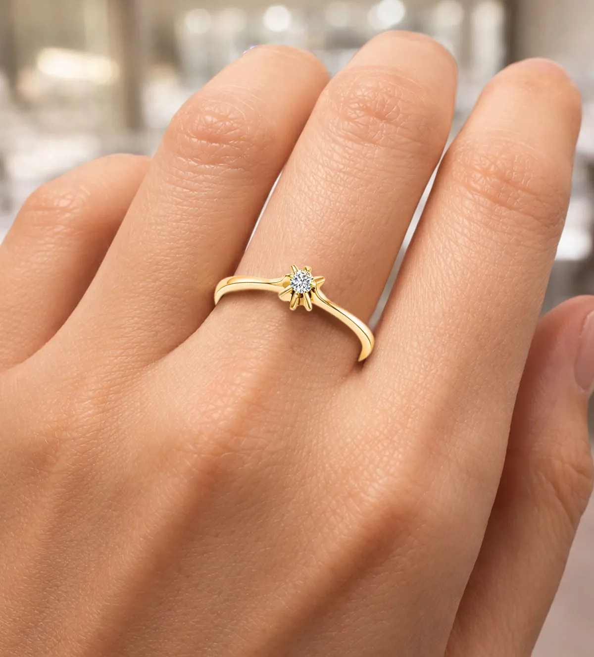 El anillo de compromiso representa la eternidad, el amor y la lealtad. El brillante simboliza la pureza de los sentimientos, mientras que el oro amarillo refuerza la idea de un vínculo sólido e inquebrantable.