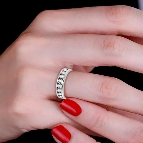 Con un peso de 4,80 g y un ancho de 4,50 mm, este anillo ofrece un ajuste cómodo y seguro para el uso diario. Su diseño equilibrado asegura que luzca espectacular en cualquier tamaño, adaptándose perfectamente a cada mano.