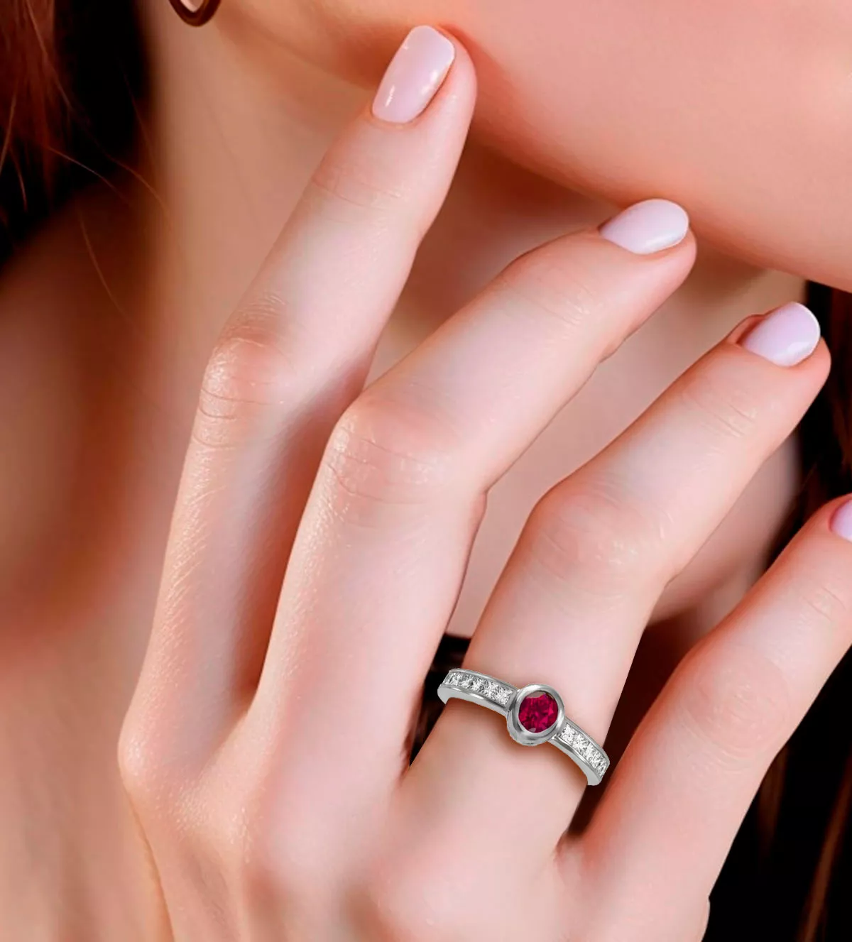 El rubí, conocido como la piedra de la pasión y el amor eterno, es perfecto para regalar a alguien especial o para conmemorar un momento significativo. Su color rojo profundo simboliza el amor verdadero, la fuerza y el valor, lo que lo convierte en la opción ideal para celebraciones importantes, como aniversarios o compromisos. Los diamantes, por su parte, representan la pureza y la eternidad, lo que hace de este anillo una joya simbólica cargada de significado.