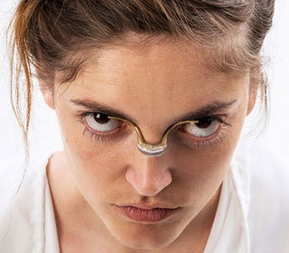 Que se aloja sobre el puente de la nariz y aprovecha el aumento del flujo de sangre que se produce en el usuario cada vez que parpadea.