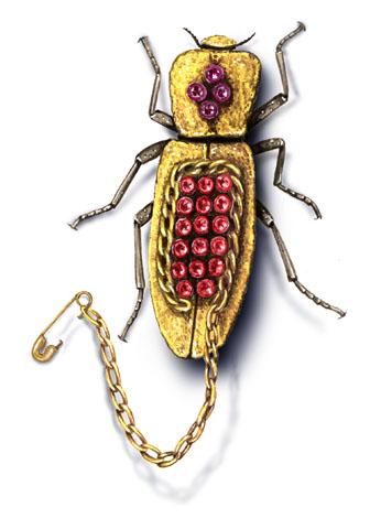 También hay joyas de este tipo diseñadas sobre cucarachas gigantes vivas, y su diseñador afirma que si se le dan los cuidados oportunos pueden sobrevivir hasta un año entero.