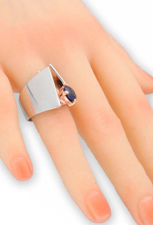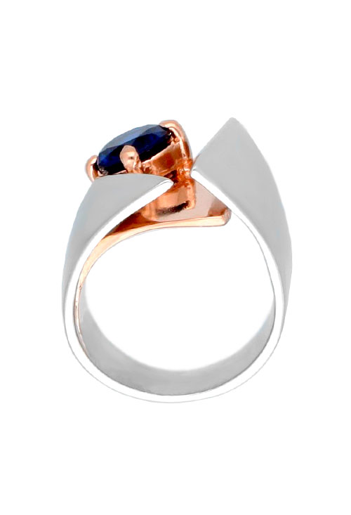 Anillo de plata bicolor elaborado en plata de ley de 925 milésimas con cristal checo azul sobre plata chapada en color oro rosa por medio de un engaste en garra de 4 patas. Una sortija magnifica para regalar, por su belleza y diseño nunca pasara desapercibida.