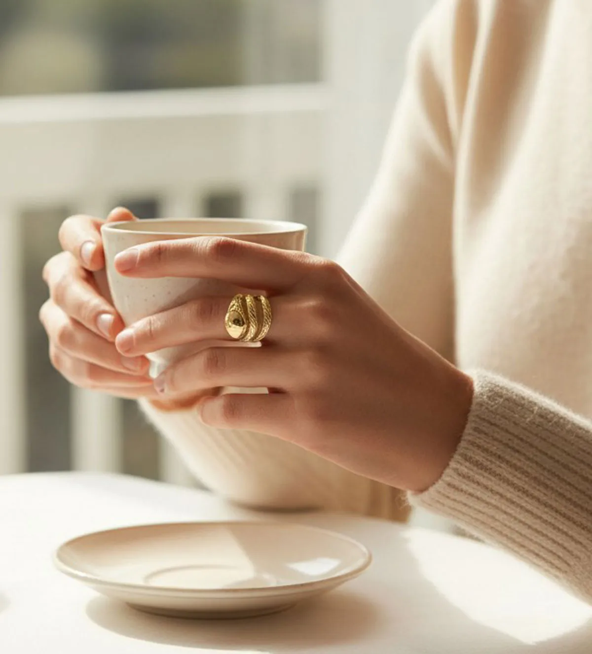 Con un ancho aproximado de 21 mm y un peso total de 7 gramos, este anillo de plata ofrece una sensación sólida pero equilibrada. Su forma envolvente permite que se adapte cómodamente al dedo, aportando firmeza sin sacrificar comodidad. Es una pieza perfecta para llevar durante todo el día sin molestias, gracias a su diseño estudiado para aportar confort y estabilidad.