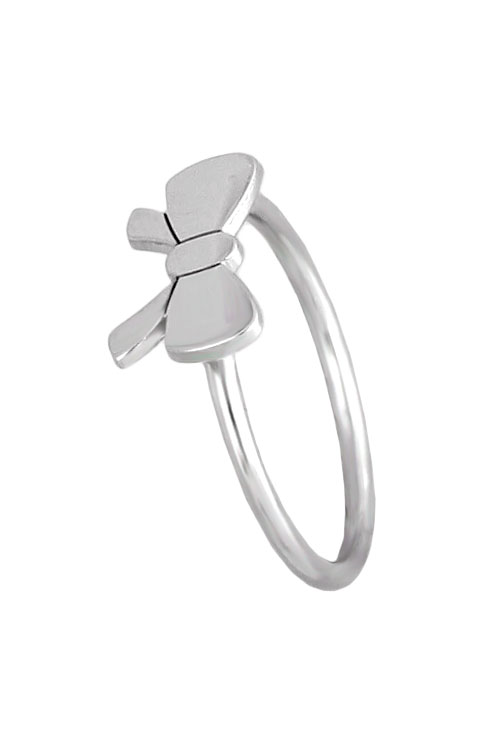 Anillo de plata forma de lazo, cuidado diseño de una sortija indicada tanto para mujer como para niña, brazo de hilo redondo con el motivo de lazo plano todo acabado brillo rodio.