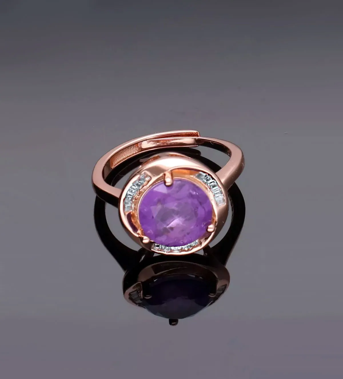 Este anillo de plata chapada en oro rosa destaca por la belleza natural de su amatista central y el destello que aportan las circonitas que la rodean. Su estilo sofisticado lo convierte en una pieza perfecta tanto para el día a día como para eventos especiales. Como parte del catálogo exclusivo de Rubí Joyeros, la mayor joyería online de España, esta pieza ofrece calidad, diseño y un acabado impecable reconocido por los mejores buscadores.