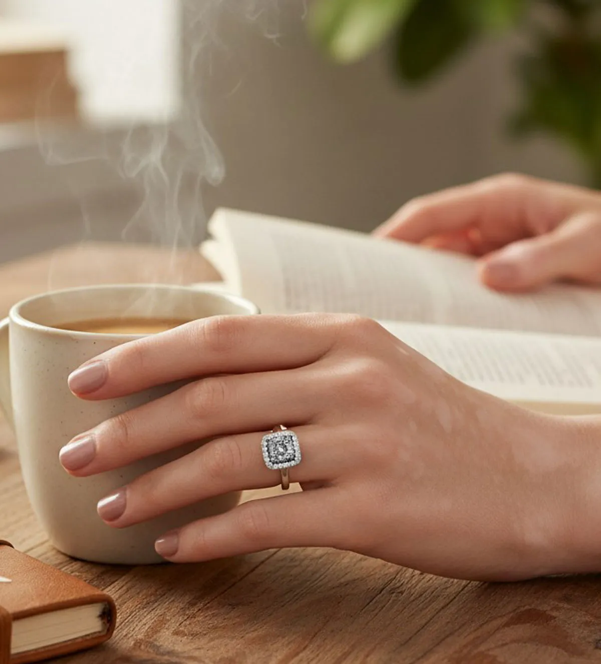 Para conservar el brillo y la belleza del anillo, se recomienda guardarlo en su estuche cuando no se utilice y evitar el contacto directo con productos químicos, perfumes o cremas. Limpiarlo ocasionalmente con un paño suave específico para plata ayudará a mantener su aspecto original. Con un cuidado adecuado, esta joya conservará su encanto durante mucho tiempo.