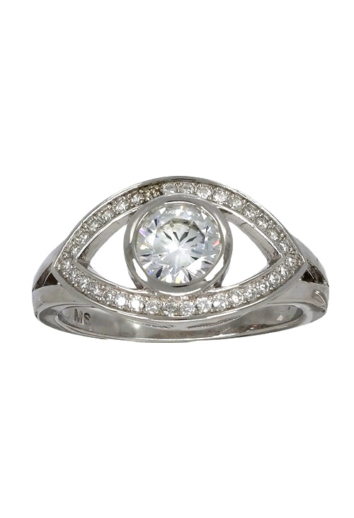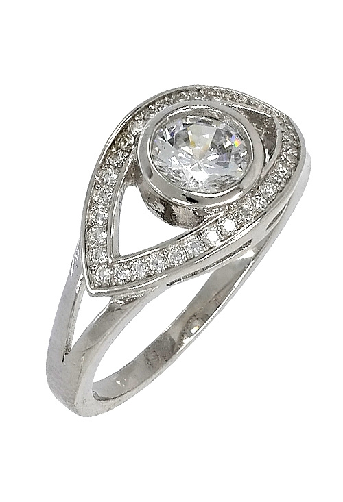 Anillo de plata con circonitas multibrazo, un original diseño que parte de una sortija con circonita central engastada en chatón en el interior de una orla de galería ojival con piedras más pequeñas engastadas con la tecnica de granos, no podemos evitar que nos recuerde a un ojo humano, a esta sortija se le pueden añadir otros dos brazos a cada lado dos con circonitas y dos lisos que se acoplan perfectamente a la parte principal y forman un modelo mucho más ancho, sin lugar a dudas es una sortija espectacular que nunca deja a nadie indiferente con la que siempre vas a sorprender.