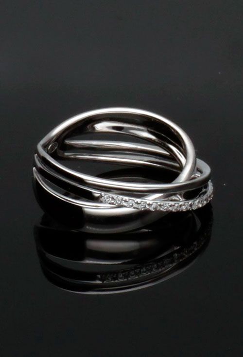 Anillo de compromiso oro blanco con diamantes aros cruzados