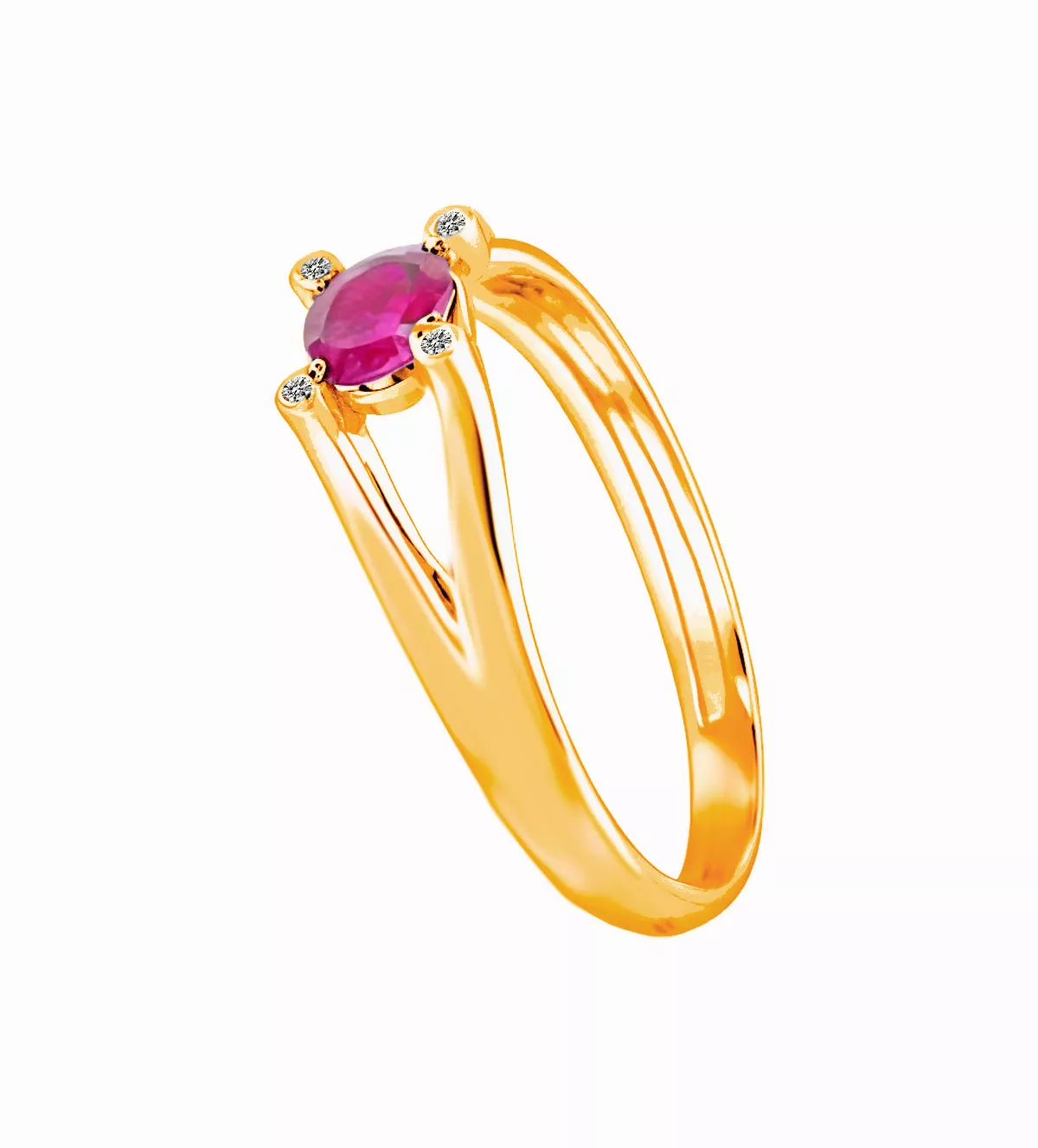 Anillo de oro amarillo 18k con rubí fino y circones “Nova Roja”