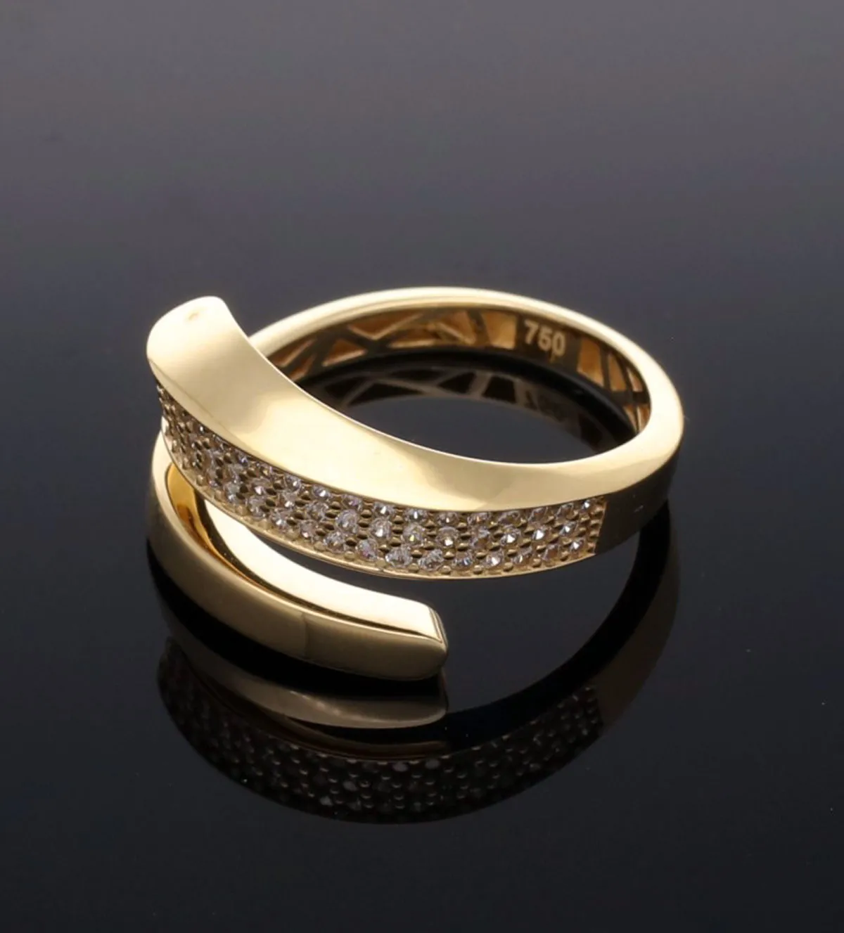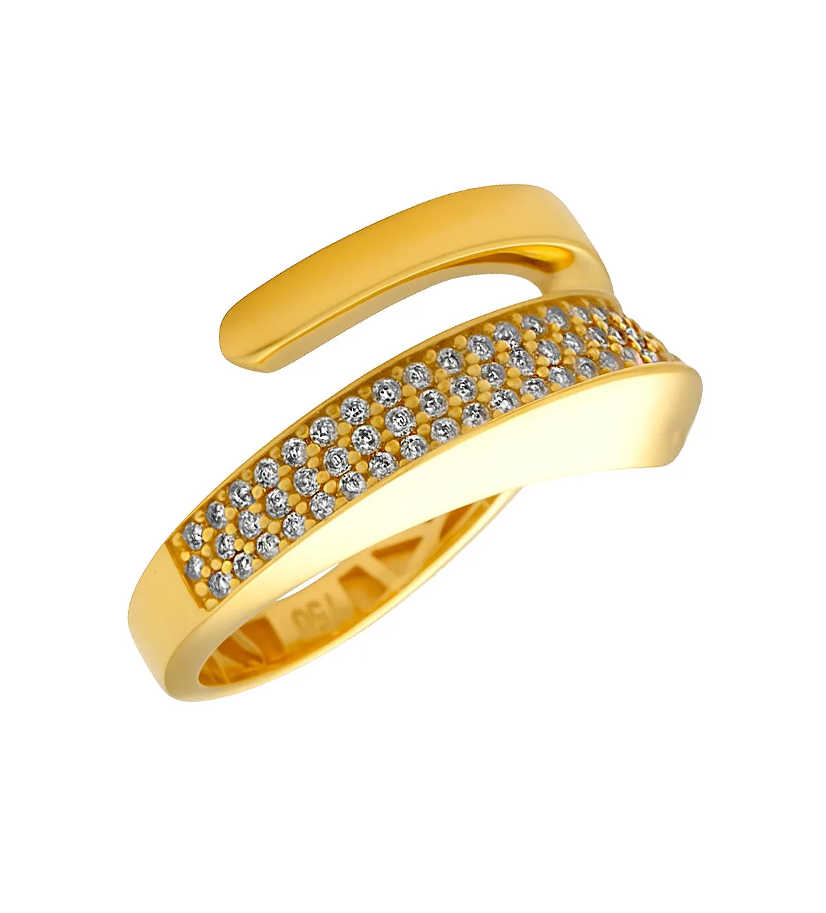 El cuajo de circones en pavé recorre las formas del anillo con un brillo uniforme y sofisticado, convirtiéndolo en una joya de gran personalidad. Si buscas un anillo de oro que combine diseño contemporáneo y elegancia clásica, este modelo es la elección acertada.