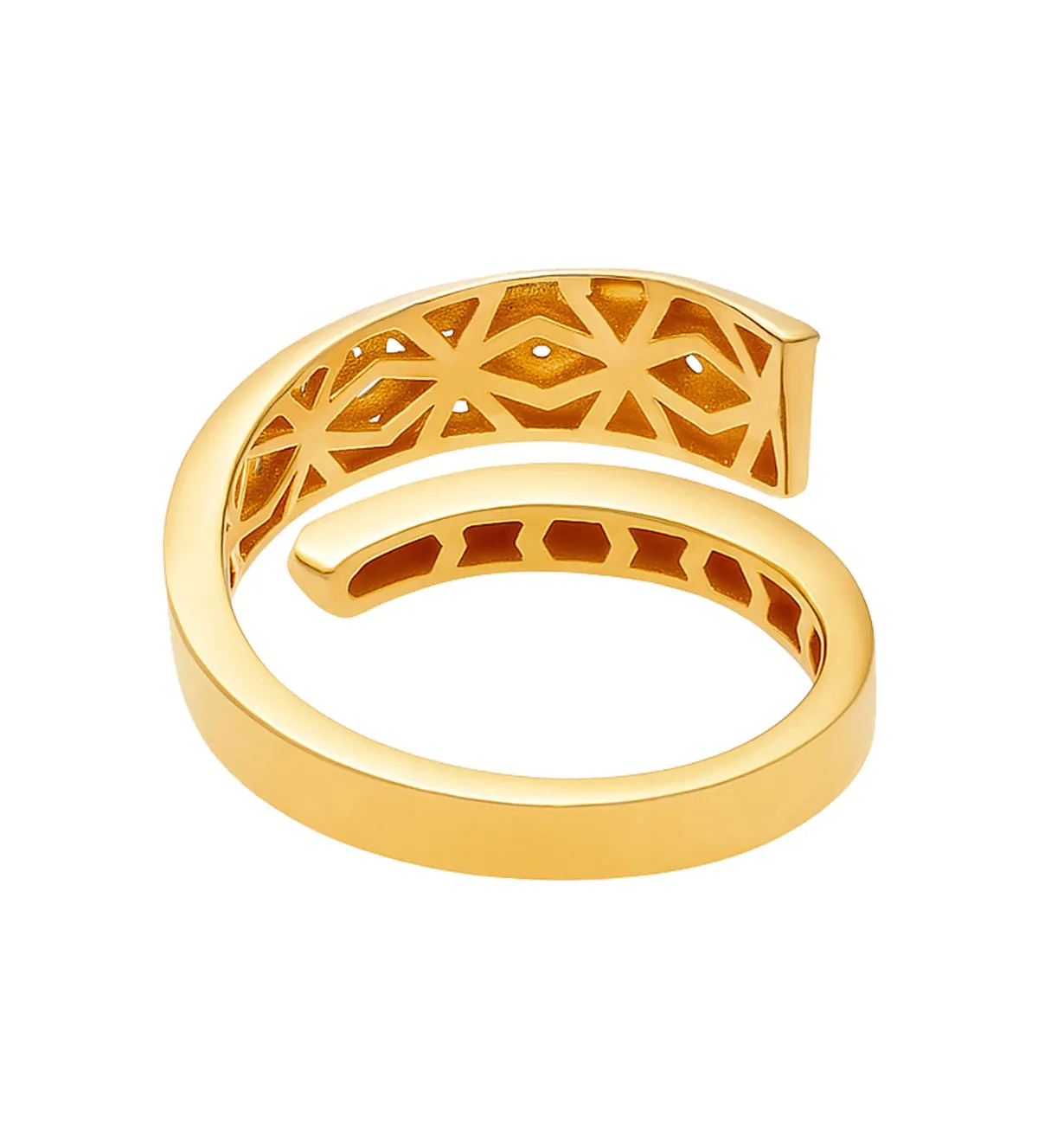 Gracias a su estructura abierta, este anillo de oro puede ajustarse con facilidad a distintas medidas de dedo. Es perfecto si deseas regalarlo y no conoces con exactitud la talla, o si prefieres un anillo versátil que puedas llevar en distintos dedos según la ocasión.