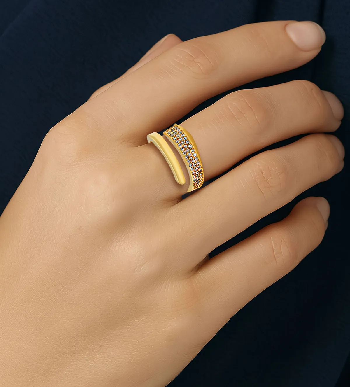 El anillo de oro es mucho más que una simple joya: es un símbolo de elegancia, conexión y estilo atemporal. Este modelo con diseño “tú y yo” en volumen 3D y un espectacular cuajo de circones en pavé es la elección perfecta para quienes desean lucir un accesorio exclusivo que atraiga todas las miradas.