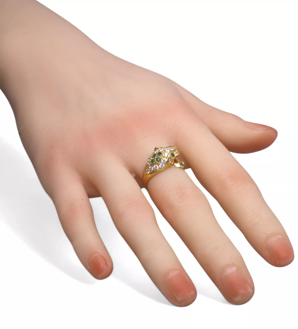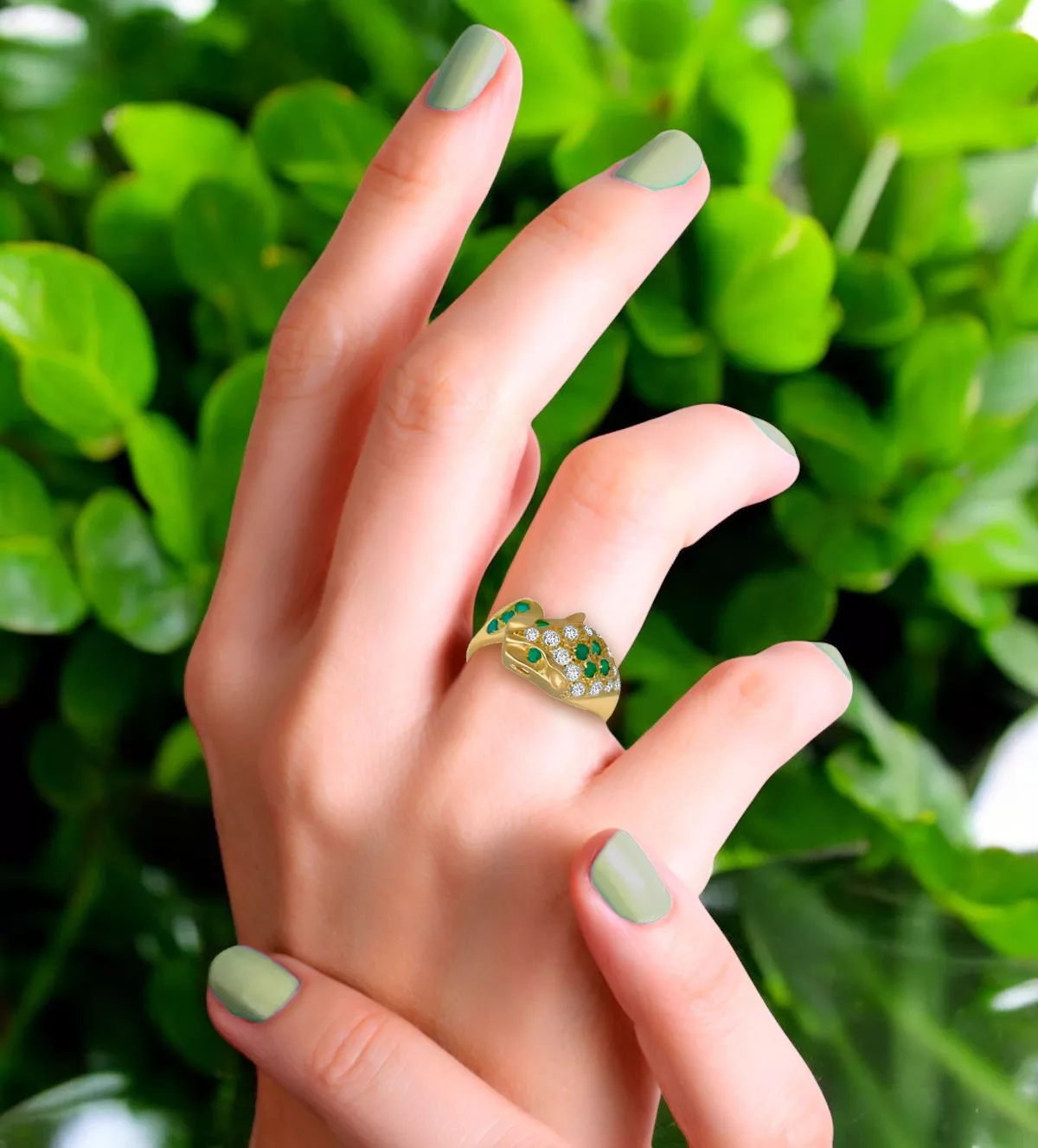 La pantera, símbolo de fuerza, coraje y misterio, convierte este anillo en un amuleto poderoso. Las esmeraldas, conocidas por sus propiedades de renovación y equilibrio, aportan un significado espiritual a esta joya, haciéndola ideal para quienes buscan un accesorio con un propósito más profundo.