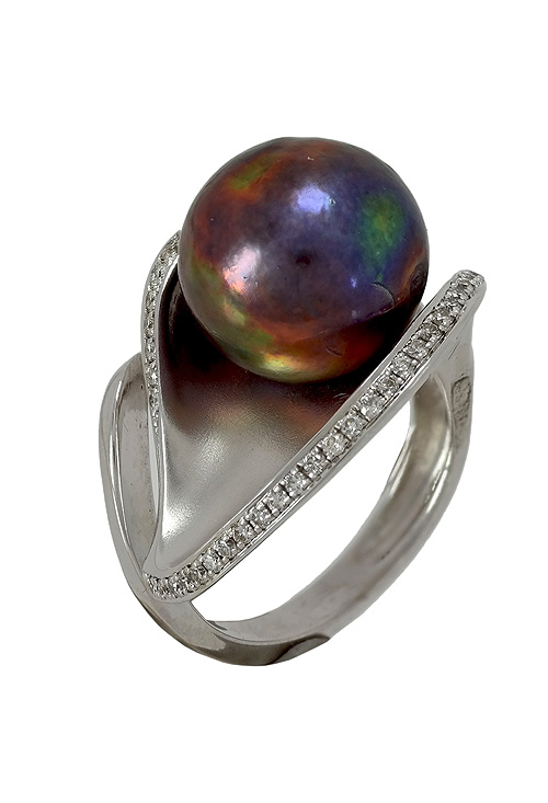 Anillo de oro blanco 18 ktes, con diamantes y perla cultivada gris 065_0009627-00