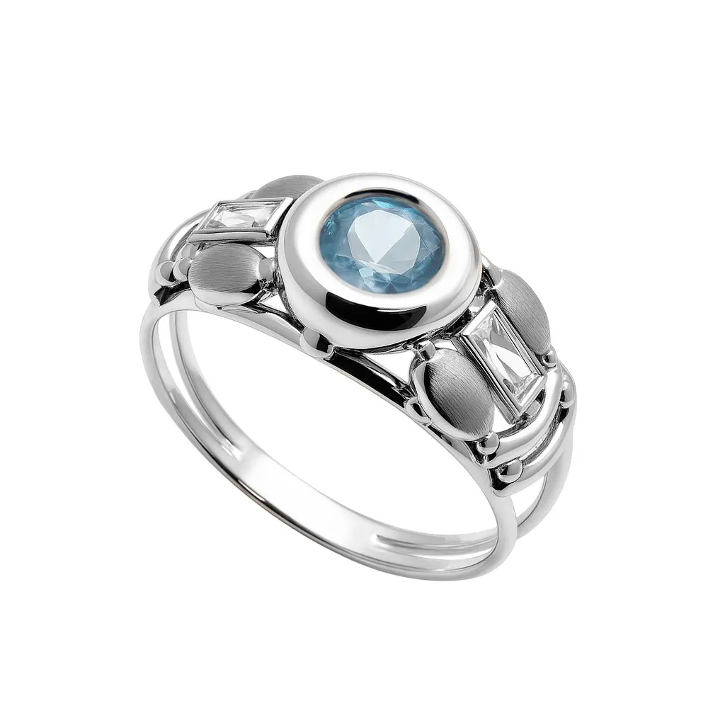 Inspirado en la elegancia de los solitarios clásicos, este anillo de oro combina la pureza del oro blanco con la luminosidad del topacio azul. El contraste entre el acabado brillante y el toque mate crea una textura visual moderna, sin perder la esencia de la joyería tradicional. Su estructura estilizada lo convierte en un accesorio cómodo, ligero y sofisticado, ideal para lucir tanto en ocasiones especiales como en el día a día.