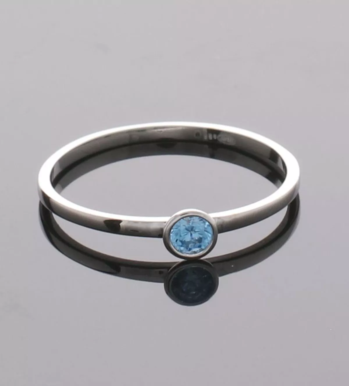 Anillo de oro blanco 18k Solstice Topacio Azul, Este elegante Anillo de oro blanco 18k Solstice Topacio Azul es una sencilla y bella joya en la que destaca su brazo plano acabado liso y brillo rodio. Con un diseño minimalista luce un topacio azul de talla redonda engastado en boquilla, perfecta para lucir de forma sencilla y elegante diciendo mucho bueno de ti