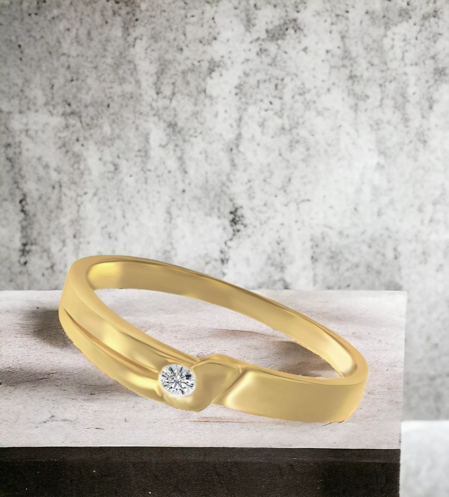 Descubre la encantadora fusión de elegancia y significado en nuestro anillo de oro amarillo de 18 kilates con circonita, especialmente diseñado para niñas en su Primera Comunión. Este modelo presenta una banda estrecha en disminución, contrapeada al centro con una circonita engastada en el cruce central, creando un diseño sencillo y discreto.