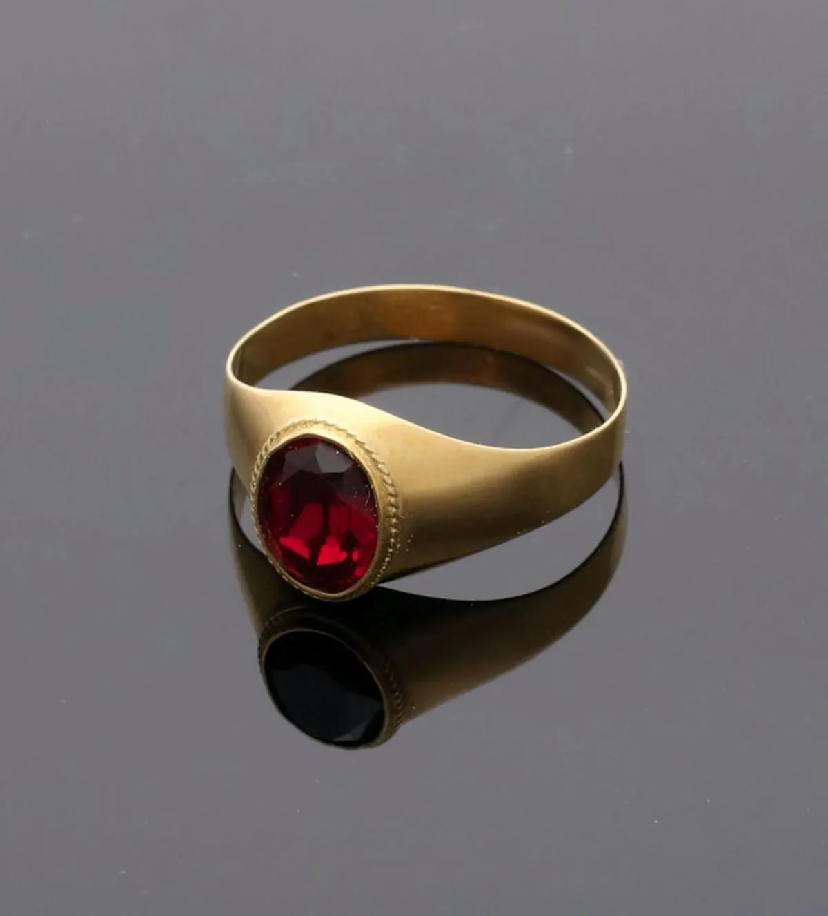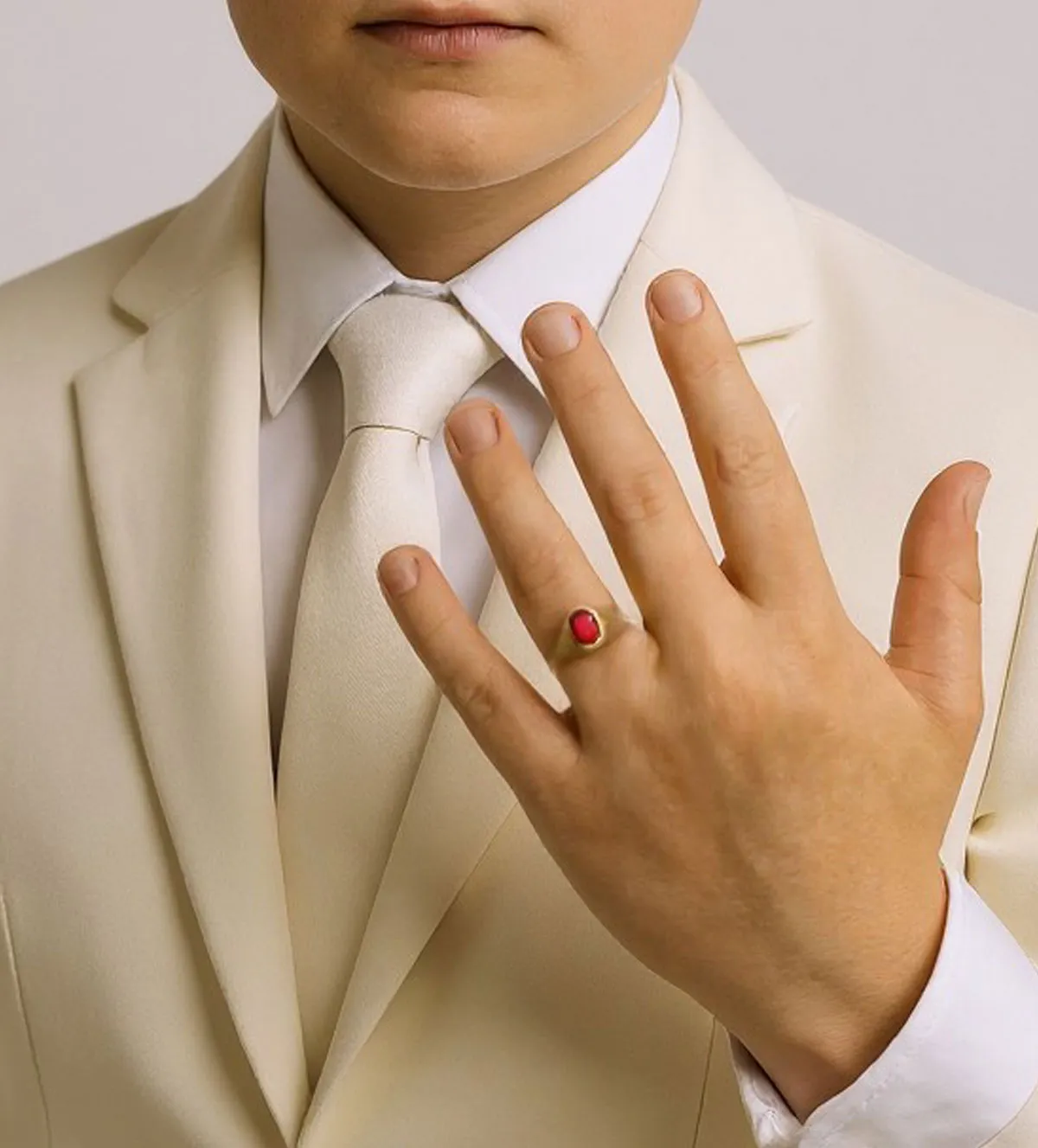 Anillo de oro para niño con piedra roja: elegancia clásica para un día inolvidable