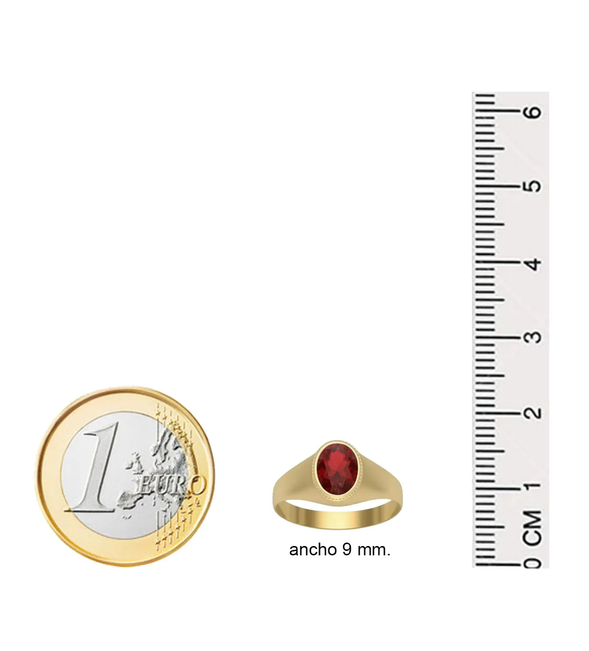 El anillo tiene un ancho de 9 mm, proporcionando presencia sin resultar recargado. El peso aproximado de 1,60 gramos lo convierte en una pieza ligera, ideal para un niño que lo lleve por primera vez. En Rubí Joyeros, ofrecemos ajuste personalizado si se requiere, para asegurar un calce perfecto y seguro.