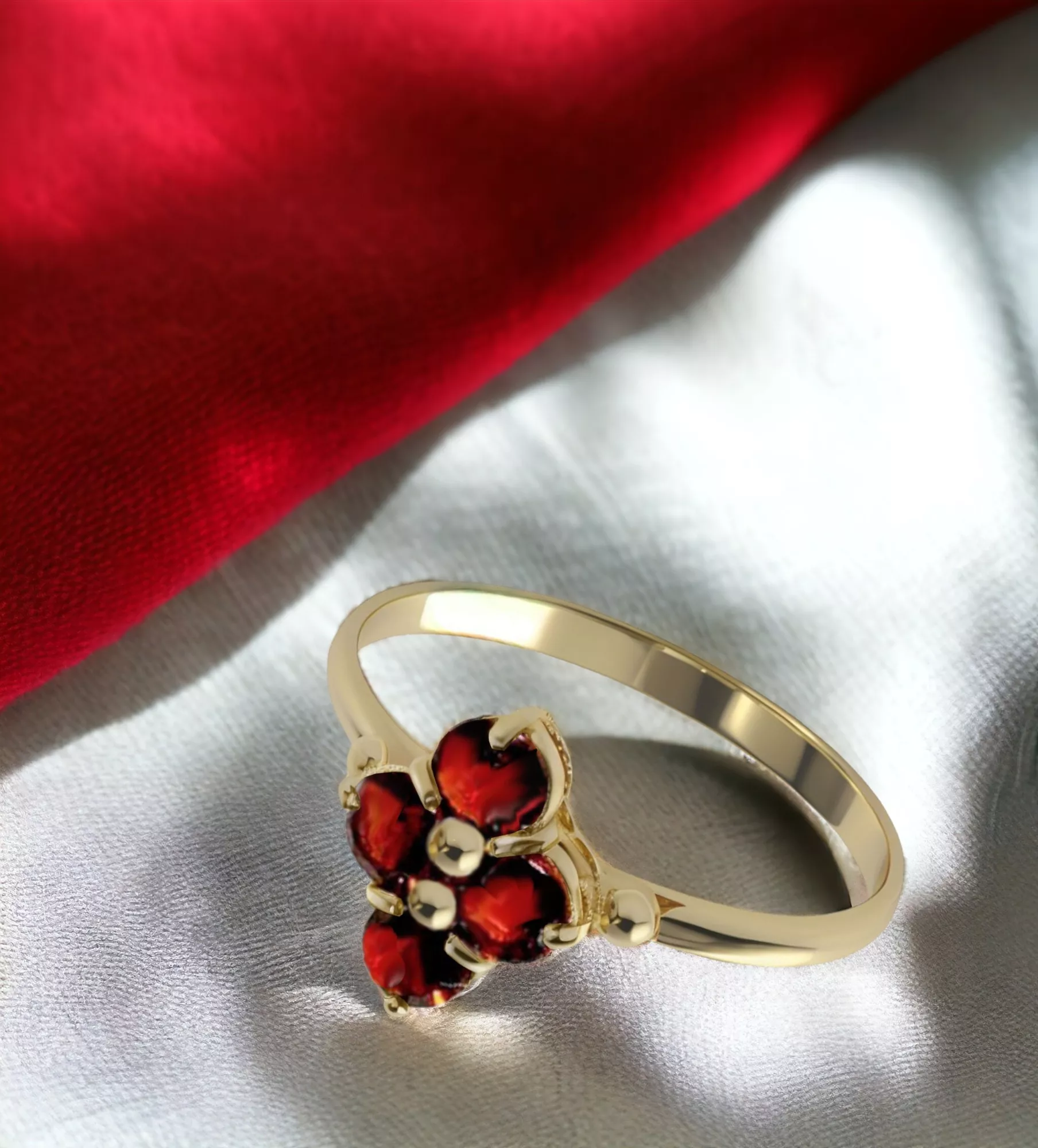 Anillo de Oro Amarillo con Granates: Elegancia Versátil