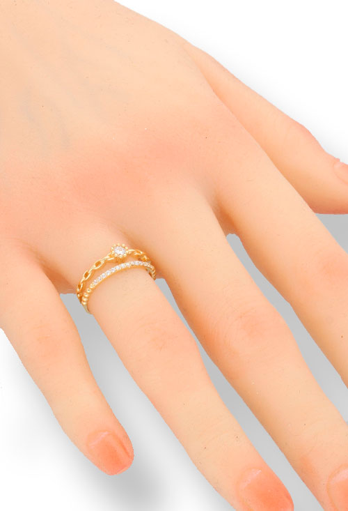 Anillo oro amarillo 18 kilates dos en uno, novedoso modelo para ti que tanto te esfuerzas en llevar cosas diferentes pero que a la vez sean intemporales, con este diseño lucirás un modelo que por si solo llama la atención sin caer en ninguna extravagancia, oro amarillo de 18 kilates y circonitas, uno de sus brazos a modo de cadena con eslabones y el otro una galería clásica de circonitas engastadas en garras individuales entre formas lisas circulares.