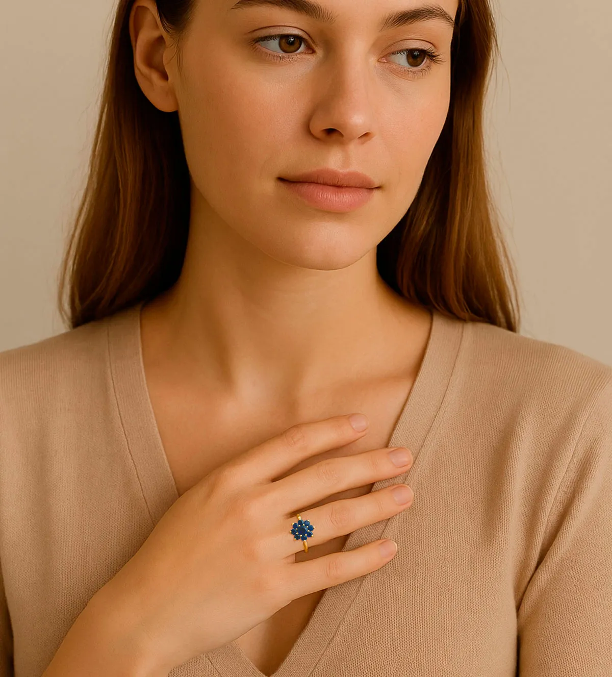 Anillo de oro con zafiros finos: elegancia atemporal que transforma cualquier look