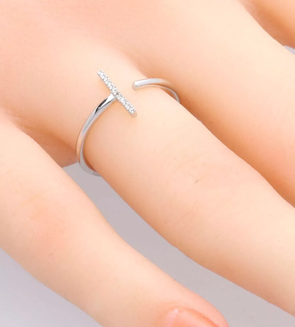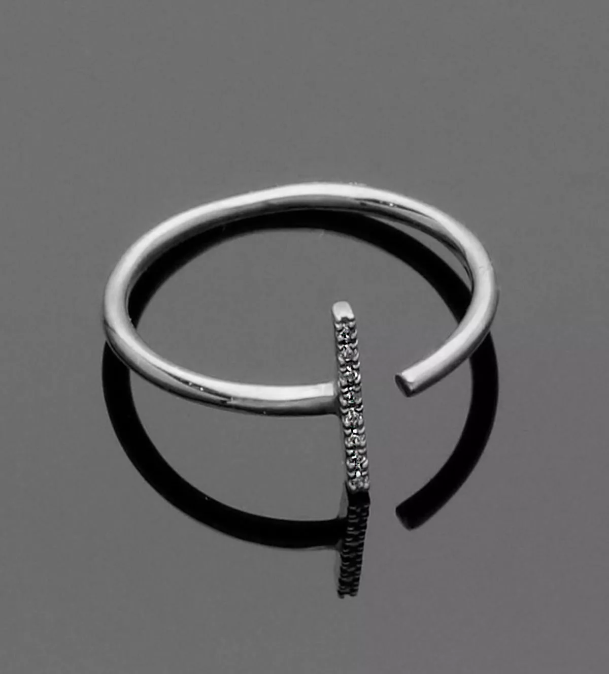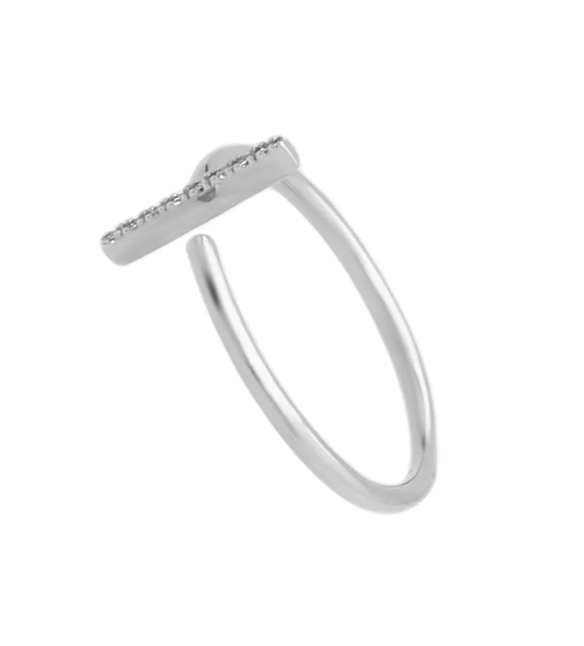 Anillo de oro blanco 18k con 8 diamantes en carril “T” precioso minimalista diseño de aire novedoso.