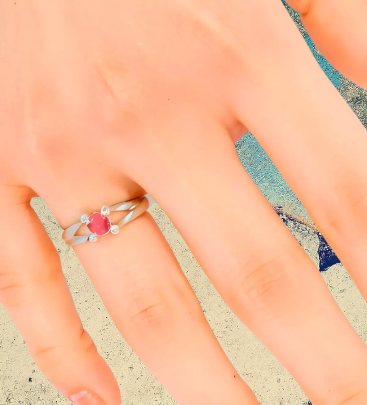 Anillo de oro blanco 18k con rubí y circones “Nova Roja”