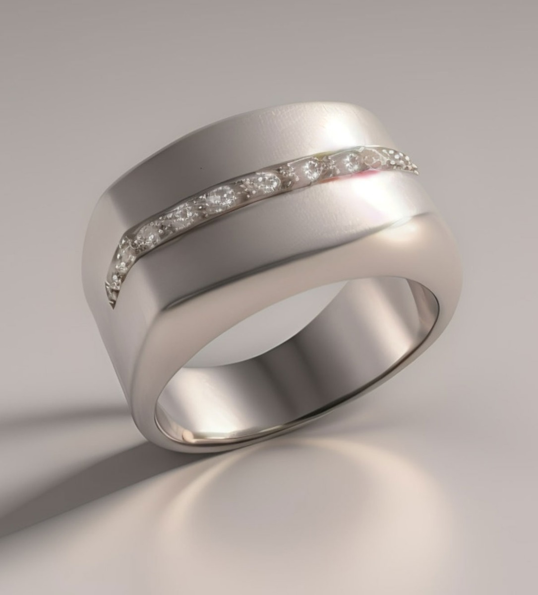 Con una galería de brillantes en el centro, este anillo destaca por su diseño único y sofisticado. El plano ancho de 12 mm le da un toque moderno y audaz a tu look. Además, la forma plana del anillo junto con la galería de 9 brillantes crea un contraste encantador que no pasará desapercibido.